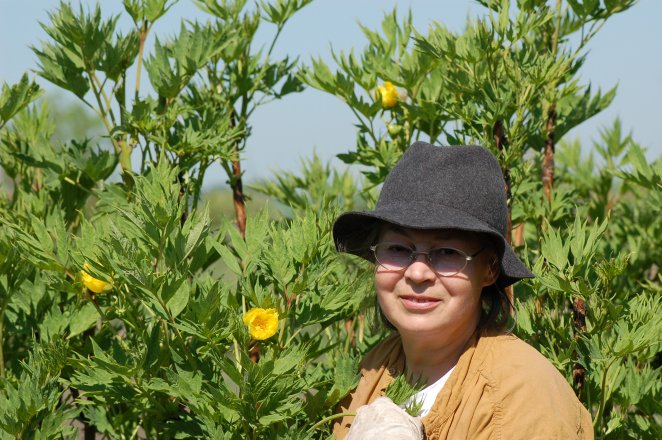 Ja, es gibt sie, aber die vorhandenen gelben Kulturformen sind noch lange nicht perfekt. Auch die neuesten "gelben" Staudenpfingstrosen zeigen nur blassgelbe Tönungen. Gelbe Strauchpäonien-Züchtungen bringen z.T. prächtige, kräftig gefärbte Blüten hervor, aber sie haben die kurzen, krummen Blütenstiele der Wildart Paeonia lutea geerbt. Ein echter Lichtblick sind einige der neuen intersektionellen Hybriden, wie z.B. die berühmte "Bartzella". Insgesamt aber werden die Züchter hier noch eine Weile zu tun haben. Von Natur aus vollkommen sind die wenigen gelben Wildpäonien, die wir kennen, denn bei ihnen gibt es keine Entwicklung. Sie sind und bleiben, wie sie immer waren, mit größerem oder kleinerem dekorativen Wert. Eine Wildart kann prächtig, bescheiden oder auch unscheinbar, doch niemals hässlich sein, und es ist uns überlassen, ob wir sie im Garten haben wollen oder nicht. Typisch für Wildpflanzen ist allerdings, dass sie manchmal etwas empfindlich sind und in der Gartenkultur nicht so recht wachsen wollen. Auf Paeonia ludlowii trifft das in keiner Weise zu. Sie ist sicherlich die prächtigste aller gelben Wildpäonien. Zur Entwicklung der Gartenformen hat sie bisher kaum beigetragen, denn sie wurde erst 1936 in Südost-Tibet entdeckt, und die Züchter haben bei ihrer Arbeit vor allem auf die bereits bestehenden Sorten zurückgegriffen. Während Paeonia lutea relativ unscheinbar und auch empfindlich ist, ist P. ludlowii kaum totzukriegen. Unter guten Bedingungen bildet eine Pflanze schließlich einen Busch von 2,5m Höhe und 4m Breite. Und was für einen! Aus einem "Wald" von Zweigen entspringen im Mai fast gleichzeitig die eleganten lindgrünen Blätter und leuchtend gelbe ("butterblumengelbe") Blüten. Obwohl die Blüten bei dieser Päonie vielleicht nicht das wichtigste sind ( sie ist - mit den Worten der "Gartenphilosophen" - eine "Gestaltpflanze") haben sie die respektable Größe von etwa 8cm und das intensivste, reinste Gelb, das sich denken lässt. Die Blätter wachsen auch nach der Blüte weiter, bis der Strauch einen wahrhaft tropischen Eindruck macht. Die Pflanzen haben wahrscheinlich anderes verdient, aber wir verwenden sie vor allem zum Verdecken einiger hässlicher Plätze in unserem Garten, wie z.B. der Wasserstelle (siehe das letzte Bild unter Nr. 4750). Leider haben wir kein Schloss mit zugehörigem Park, wo diese prächtige Päonie am besten zur Wirkung käme und auch ihrem eigenen Adel entsprechend würdig untergebracht wäre. Wir denken aber, sie wird sich bei jedem wohl fühlen, der ihre Schönheit zu schätzen weiß und ihre geringen Ansprüche erfüllt. Paeonia ludlowii entwickelt sich prächtig bei freiem, sonnigem Stand in nahrhafter Erde. In ihrer Heimat wächst sie zumeist in lichten Wäldern auf ziemlich trockenem, steinigem Boden. Deshalb nimmt sie auch bei uns gern mit solchen Verhältnissen vorlieb. Wichtig ist vor allem, dass die Wurzeln genügend Raum haben. Wer eine große Rasenfläche besitzt, kann die Pflanze als prächtigen Solitär verwenden. Ein schattiger Platz z.B. in Hausnähe führt zu schlankerem, eleganterem Wuchs und bietet auch einen gewissen Frostschutz. Die Winterhärte kann in unseren Breiten ein Problem sein, denn bei strengem Frost erfrieren die Triebspitzen mit den bereits angelegten Blütenknospen. Wenn das passiert, muss man sich im nächsten Frühjahr mit dem Blattschmuck zufrieden geben. Man sollte das erfrorene Holz wegschneiden und wird mit Staunen erleben, wie schnell sich die Pflanze aus ihrem enorm großen Wurzelstock wieder aufbaut. Es gibt Gartenliebhaber in winterkalten Gegenden, die P. ludlowii allein wegen der dekorativen Blätter kultivieren. Paeonia ludlowii lässt sich ausgesprochen einfach und zuverlässig aus Samen heranziehen. Es dauert ein paar Jahre bis zur ersten Blüte, aber die Pflanzen erfreuen uns schon bald mit ihrem hübschen Laub. Die großen Samen sollten im Frühjahr mit etwa 20 cm Abstand 3 cm tief auf ein Freilandbeet ausgelegt werden. Ein Jahr später erfolgt dann die Keimung. Die Sämlinge wachsen zügig heran und sind nach 2 Jahren Wachstum so groß und kräftig, dass sie im Herbst an ihren Bestimmungsort gesetzt werden können.